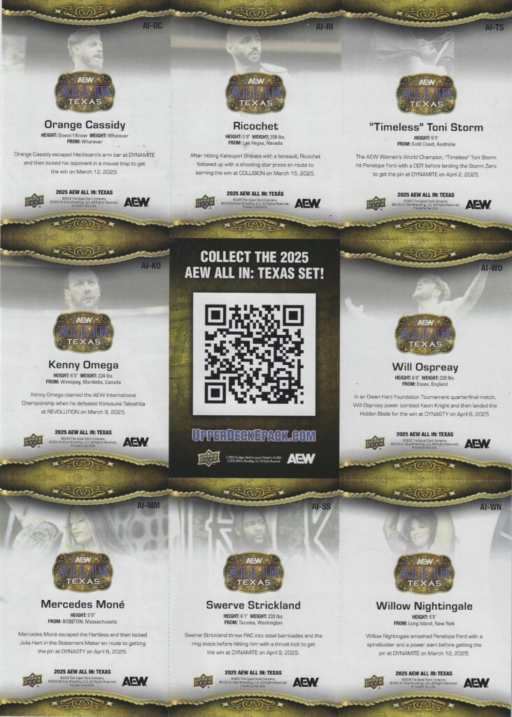 • Card Set Was Released Exclusively At The 2025 AEW All In: Texas Live Event As An Uncut 9-Card Sheet Shown Below