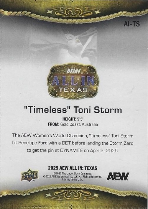 AEW UPPER DECK ALL IN: TEXAS PROMO SET 2025 – “TIMELESS” TONI STORM #AI-TS