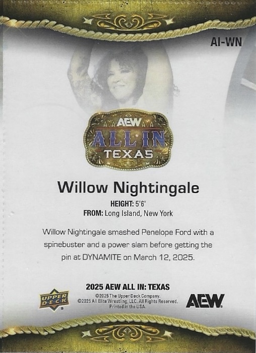 AEW UPPER DECK ALL IN: TEXAS PROMO SET 2025 – WILLOW NIGHTINGALE #AI-WN