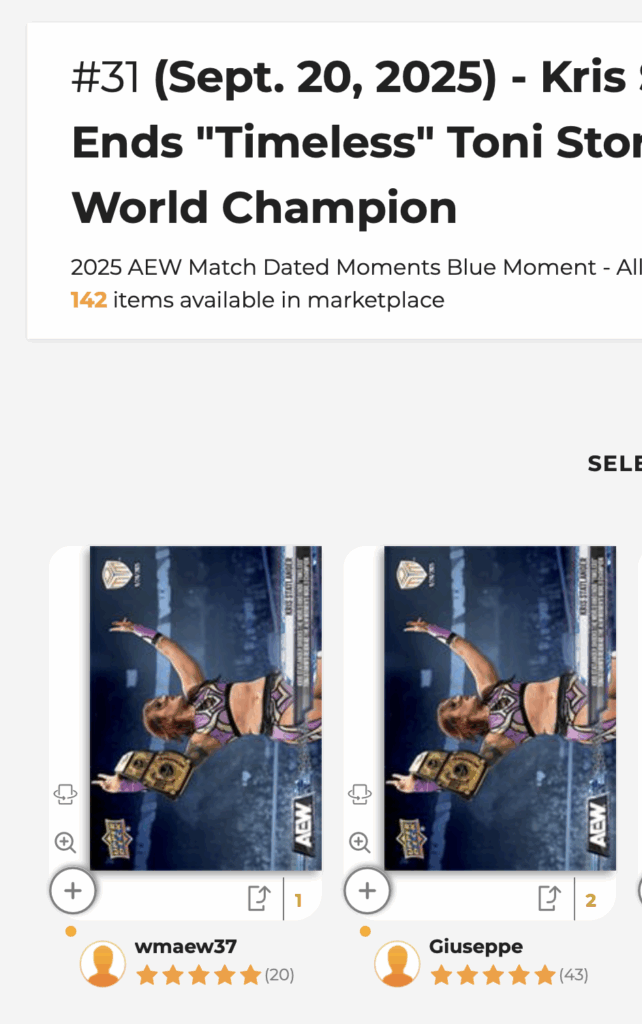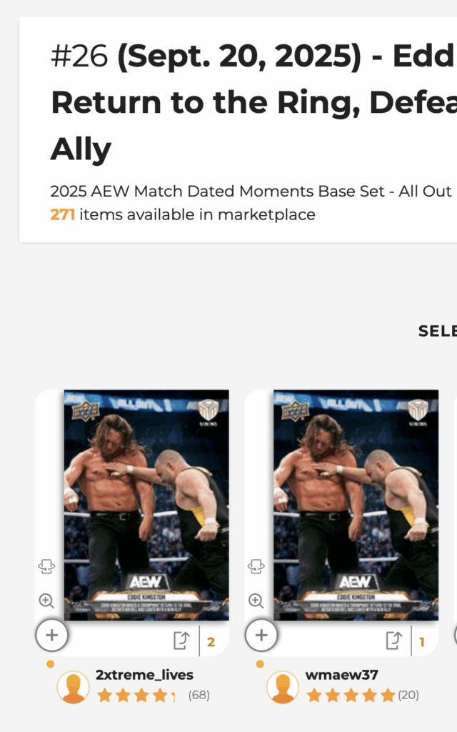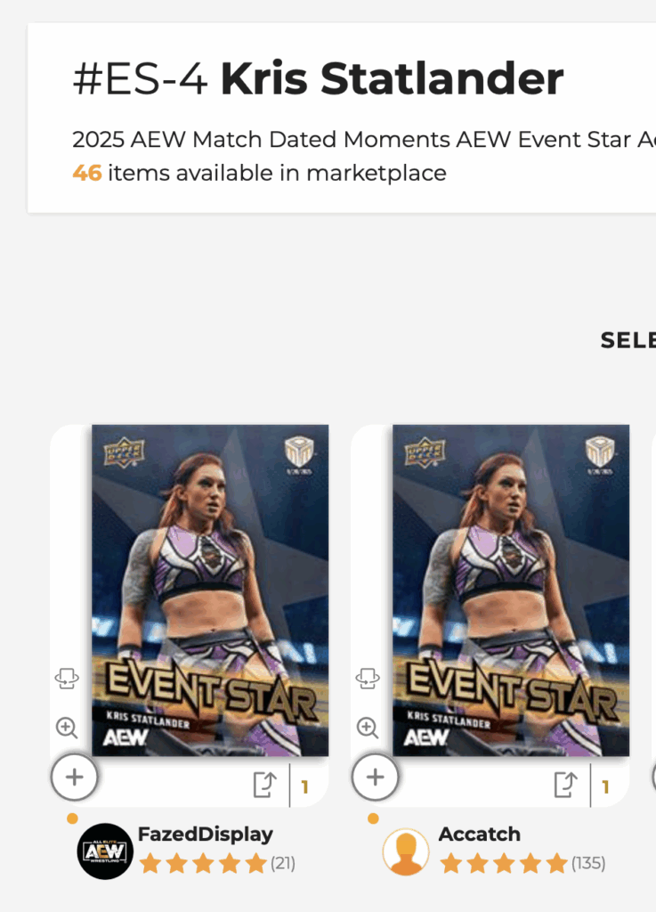 - Collectors Who Acquire A Specific 2025 AEW Match Dated Moments Set On E-Pack Can Elect To Redeem Them For 6-Card AEW Ring Favorites Achievement Sets Featuring 6 Of The Most Iconic Wrestlers In AEW