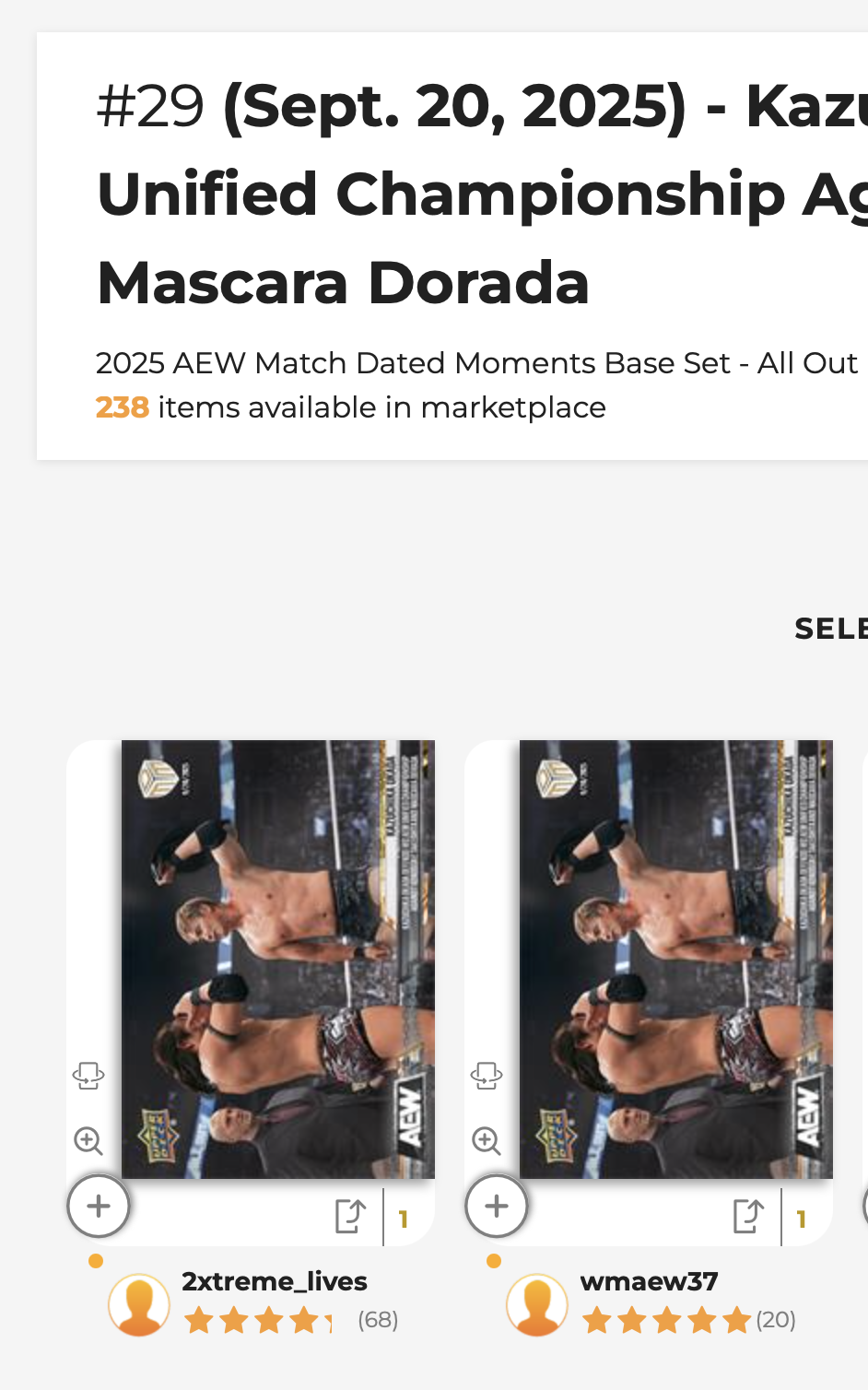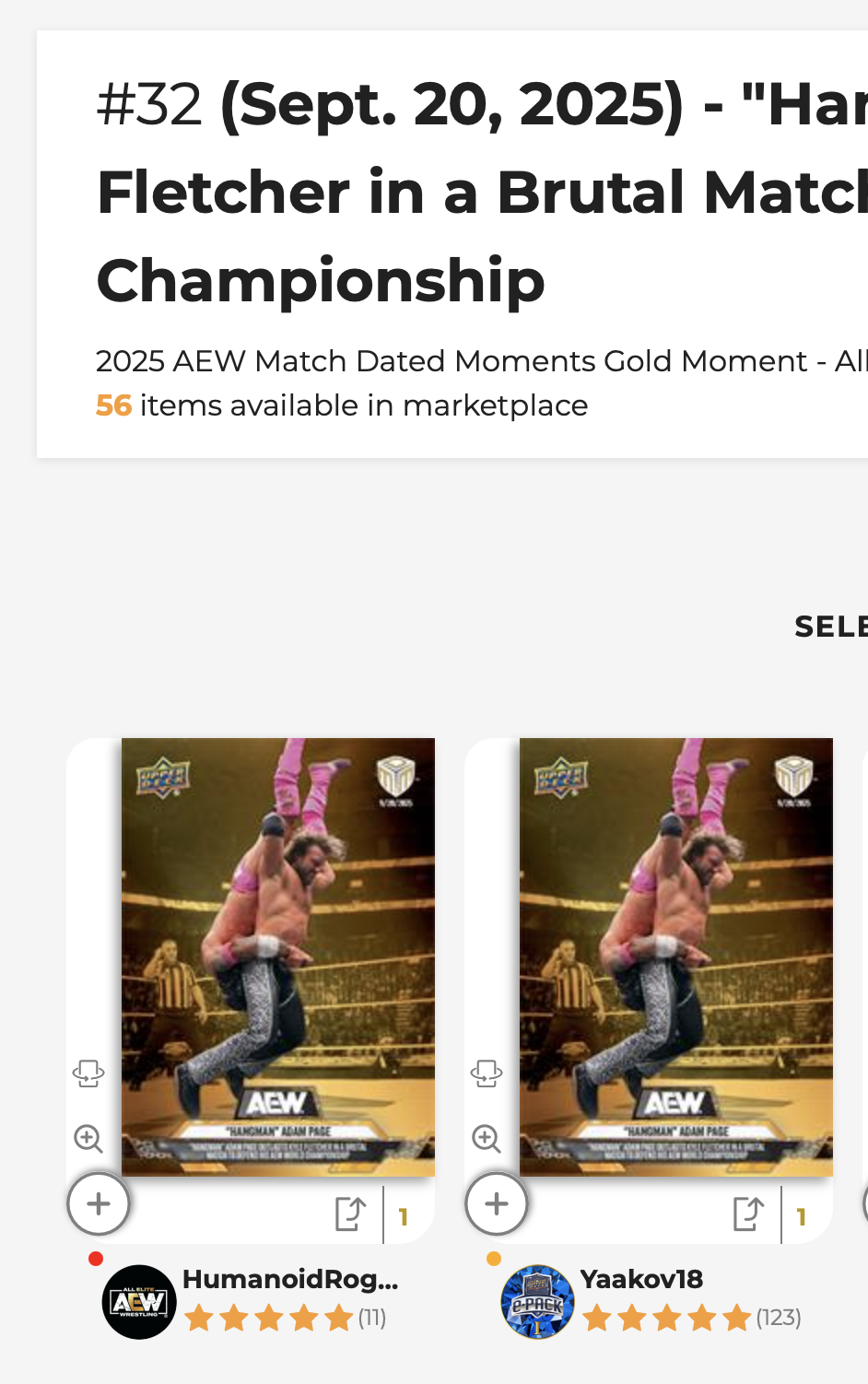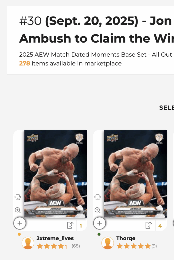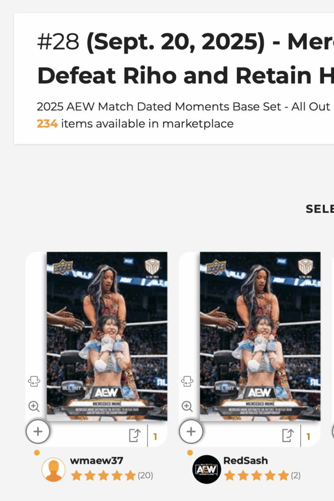 - Collectors Who Acquire All Base Set Cards For Each AEW Match Dated Moments Pay-Per-View Events Can Elect To Redeem Them For An Exclusive Event Superstar Achievement Card From That Event