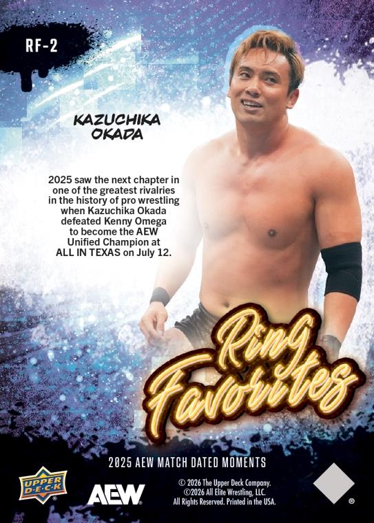 AEW UPPER DECK E-PACK MATCH DATED MOMENTS 2025 – RING FAVORITES – KAZUCHIKA OKADA #RF-2 – CHASE