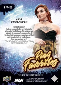 AEW UPPER DECK E-PACK MATCH DATED MOMENTS 2025 – RING FAVORITES – KRIS STATLANDER #RFA-KS – AUTOGRAPH