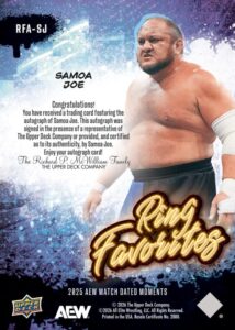 AEW UPPER DECK E-PACK MATCH DATED MOMENTS 2025 – RING FAVORITES – SAMOA JOE #RFA-SJ – AUTOGRAPH