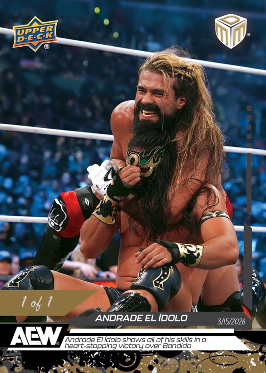 AEW UPPER DECK E-PACK MATCH DATED MOMENTS 2026 – ANDRADE EL IDOLO – ANDRADE EL IDOLO SHOWS ALL OF HIS SKILLS IN A HEART-STOPPING VICTORY OVER BANDIDO #3-REV – BLACK PARALLEL