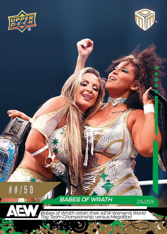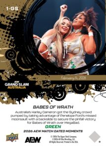AEW UPPER DECK E-PACK MATCH DATED MOMENTS 2026 – BABES OF WRATH – BABES OF WRATH RETAIN THEIR AEW WOMEN’S WORLD TAG TEAM CHAMPIONSHIP VERSUS MEGABAD #1-GS – GREEN PARALLEL