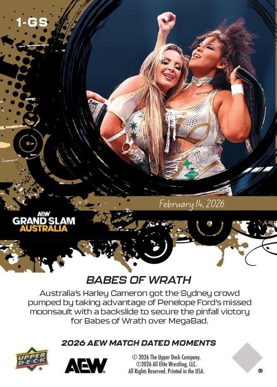 AEW UPPER DECK E-PACK MATCH DATED MOMENTS 2026 – BABES OF WRATH – BABES OF WRATH RETAIN THEIR AEW WOMEN’S WORLD TAG TEAM CHAMPIONSHIP VERSUS MEGABAD #1-GS