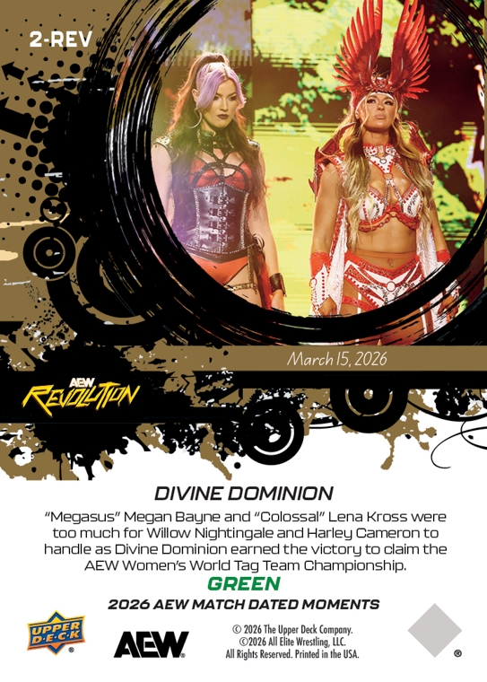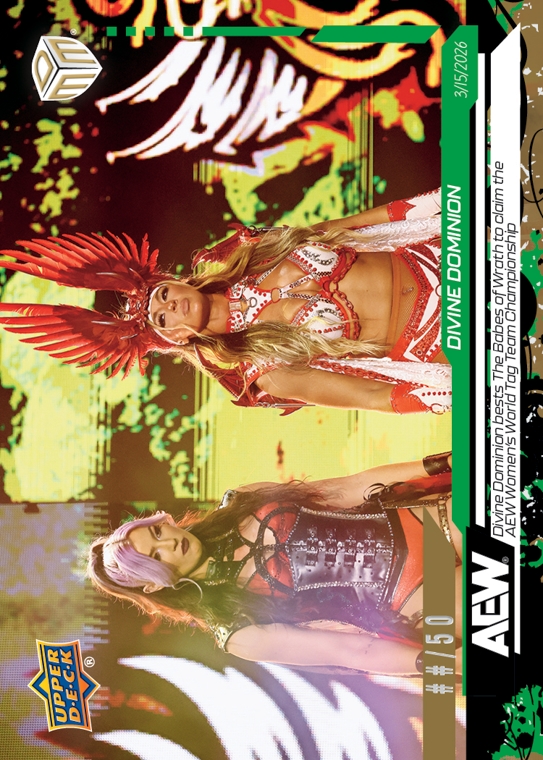 AEW UPPER DECK E-PACK MATCH DATED MOMENTS 2026 – DIVINE DOMINION – DIVINE DOMINION BESTS THE BABES OF WRATH TO CLAIM THE AEW WOMEN’S WORLD TAG TEAM CHAMPIONSHIP #2-REV – GREEN PARALLEL
