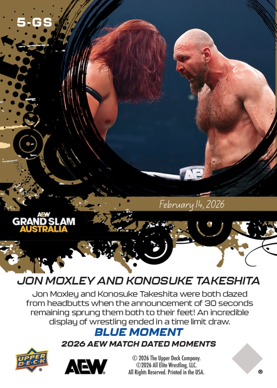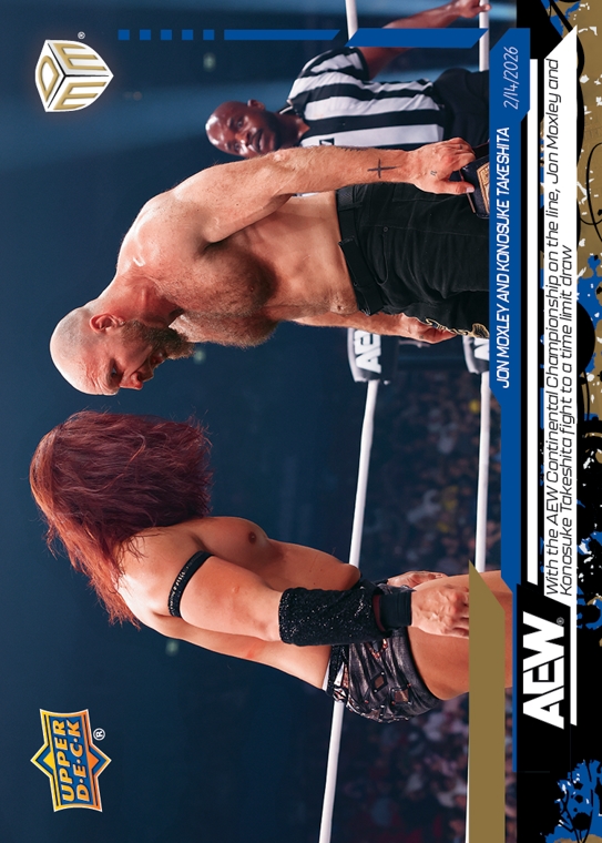 AEW UPPER DECK E-PACK MATCH DATED MOMENTS 2026 – JON MOXLEY AND KONOSUKE TAKESHITA – WITH THE AEW CONTINENTAL CHAMPIONSHIP ON THE LINE, JON MOXLEY AND KONOSUKE TAKESHITA FIGHT TO A TIME LIMIT DRAW #5-GS – BLUE PARALLEL