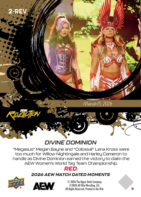 AEW UPPER DECK E-PACK MATCH DATED MOMENTS 2026 – DIVINE DOMINION – DIVINE DOMINION BESTS THE BABES OF WRATH TO CLAIM THE AEW WOMEN’S WORLD TAG TEAM CHAMPIONSHIP #2-REV – RED PARALLEL