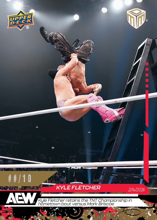 AEW UPPER DECK E-PACK MATCH DATED MOMENTS 2026 – KYLE FLETCHER – KYLE FLETCHER RETAINS THE TNT CHAMPIONSHIP IN HOMETOWN BOUT VERSUS MARK BRISCOE #4-GS – RED PARALLEL