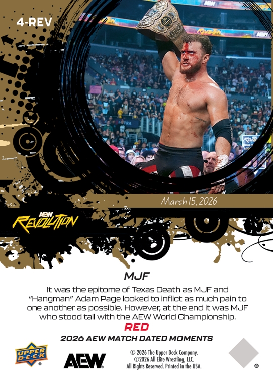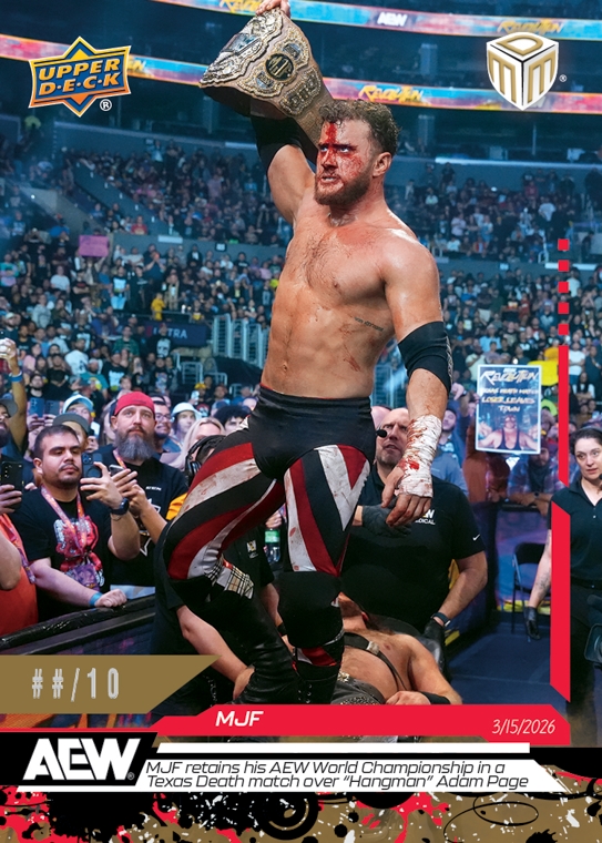 AEW UPPER DECK E-PACK MATCH DATED MOMENTS 2026 – MJF – MJF RETAINS HIS AEW WORLD CHAMPIONSHIP IN A TEXAS DEATH MATCH OVER “HANGMAN’ ADAM PAGE #4-REV – RED PARALLEL