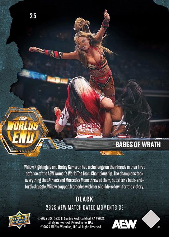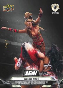 AEW UPPER DECK E-PACK MATCH DATED MOMENTS SPECIAL EDITION 2025 – BABES OF WRATH – WILLOW NIGHTINGALE AND HARLEY CAMERON DEFEND THE AEW WOMEN’S WORLD TAG TEAM CHAMPIONSHIP #25 – BLACK PARALLEL