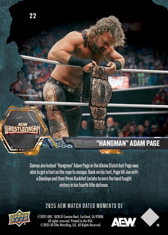AEW UPPER DECK E-PACK MATCH DATED MOMENTS SPECIAL EDITION 2025 – “HANGMAN” ADAM PAGE – “HANGMAN” ADAM PAGE DEFEATS SAMOA JOE, RETAINS THE AEW WORLD CHAMPIONSHIP #22