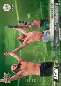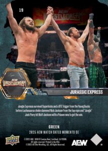 AEW UPPER DECK E-PACK MATCH DATED MOMENTS SPECIAL EDITION 2025 – JURASSIC EXPRESS – “JUNGLE” JACK PERRY AND LUCHASAURUS DEFEAT THE YOUNG BUCKS TO WIN $500,000 #19 – GREEN PARALLEL