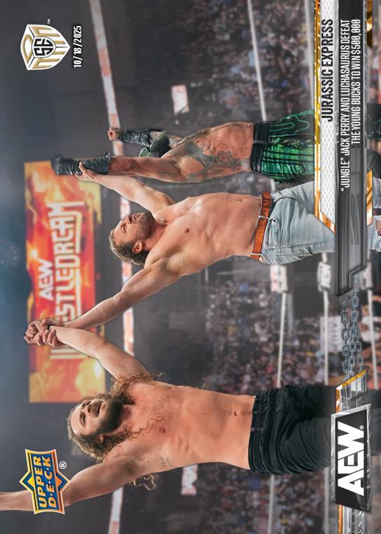 AEW UPPER DECK E-PACK MATCH DATED MOMENTS SPECIAL EDITION 2025 – JURASSIC EXPRESS – “JUNGLE” JACK PERRY AND LUCHASAURUS DEFEAT THE YOUNG BUCKS TO WIN $500,000 #19