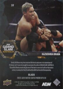 AEW UPPER DECK E-PACK MATCH DATED MOMENTS SPECIAL EDITION 2025 – KAZUCHIKA OKADA – “THE RAINMAKER” KAZUCHIKA OKADA DISAPPOINTS THE AUSTRALIAN CROWD WITH HIS WIN OVER BRISBANE’S BUDDY MATTHEWS #10 – BLACK PARALLEL