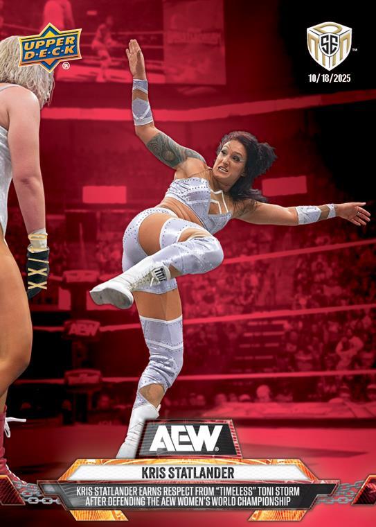AEW UPPER DECK E-PACK MATCH DATED MOMENTS SPECIAL EDITION 2025 – KRIS STATLANDER – KRIS STATLANDER EARNS RESPECT FROM “TIMELESS” TONI STORM AFTER DEFENDING THE AEW WOMEN’S WORLD CHAMPIONSHIP #21 – RED PARALLEL
