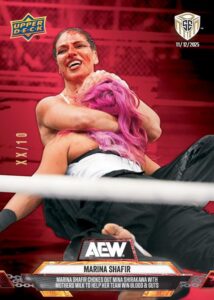 AEW UPPER DECK E-PACK MATCH DATED MOMENTS SPECIAL EDITION 2025 – MARINA SHAFIR – MARINA SHAFIR CHOKES OUT MINA SKIRAKAWA WITH MOTHERS MILK TO HELP HER TEAM WIN BLOOD & GUTS #BG-2 – RED PARALLEL