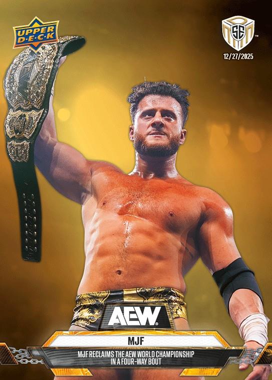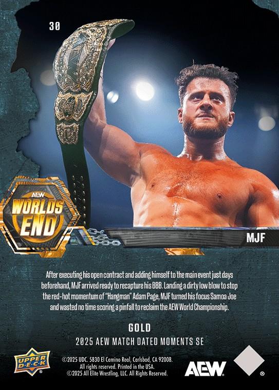 AEW UPPER DECK E-PACK MATCH DATED MOMENTS SPECIAL EDITION 2025 – MJF – MJF RECLAIMS THE AEW WORLD CHAMPIONSHIP IN A FOUR-WAY BOUT #30 – GOLD PARALLEL