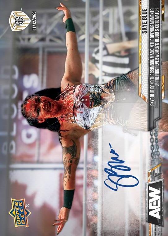 AEW UPPER DECK E-PACK MATCH DATED MOMENTS SPECIAL EDITION 2025 – SKYE BLUE – SKYE BLUE DONS THE CRIMSON MASK IN THE OPENING MOMENTS OF THE FIRST-EVER WOMEN’S BLOOD & GUTS MATCH #SEM-5 – AUTOGRAPH