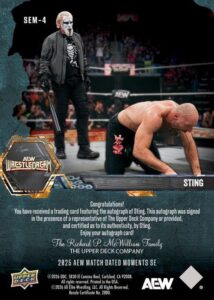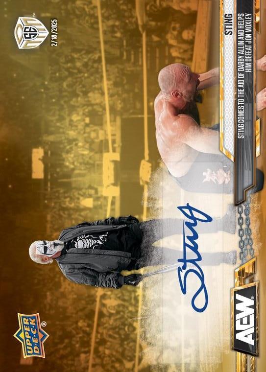 AEW UPPER DECK E-PACK MATCH DATED MOMENTS SPECIAL EDITION 2025 – STING – STING COMES TO THE AID OF DARBY ALLIN AND HELPS HIM DEFEAT JON MOXLEY #SEM-4 – AUTOGRAPH