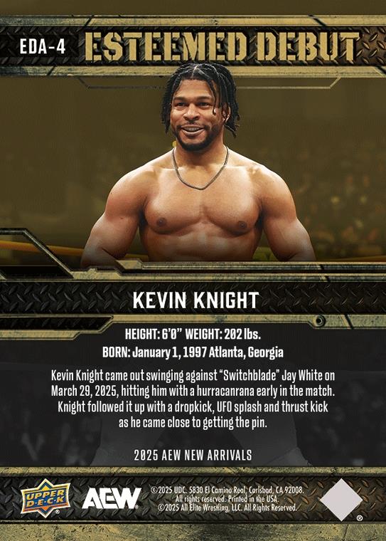 AEW UPPER DECK E-PACK NEW ARRIVALS 2025 – ESTEEMED DEBUT – KEVIN KNIGHT #EDA-4 – CHASE