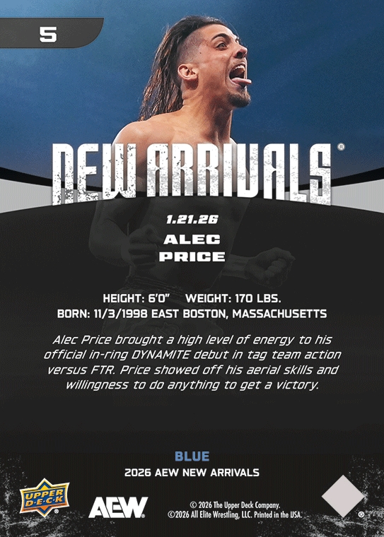 AEW UPPER DECK E-PACK NEW ARRIVALS 2026 – ALEC PRICE #5 – BLUE PARALLEL