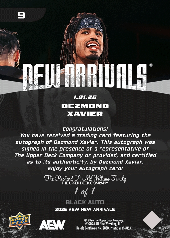 AEW UPPER DECK E-PACK NEW ARRIVALS 2026 – DEZMOND XAVIER #9 – BLACK PARALLEL AUTOGRAPH