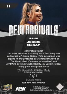 AEW UPPER DECK E-PACK NEW ARRIVALS 2026 – JESSIE MCKAY #11 – BLACK PARALLEL AUTOGRAPH