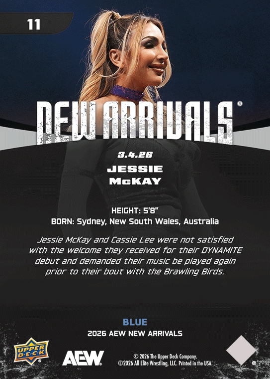 AEW UPPER DECK E-PACK NEW ARRIVALS 2026 – JESSIE MCKAY #11 – BLUE PARALLEL