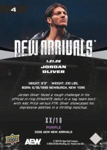 AEW UPPER DECK E-PACK NEW ARRIVALS 2026 – JORDAN OLIVER #4 – PURPLE PARALLEL
