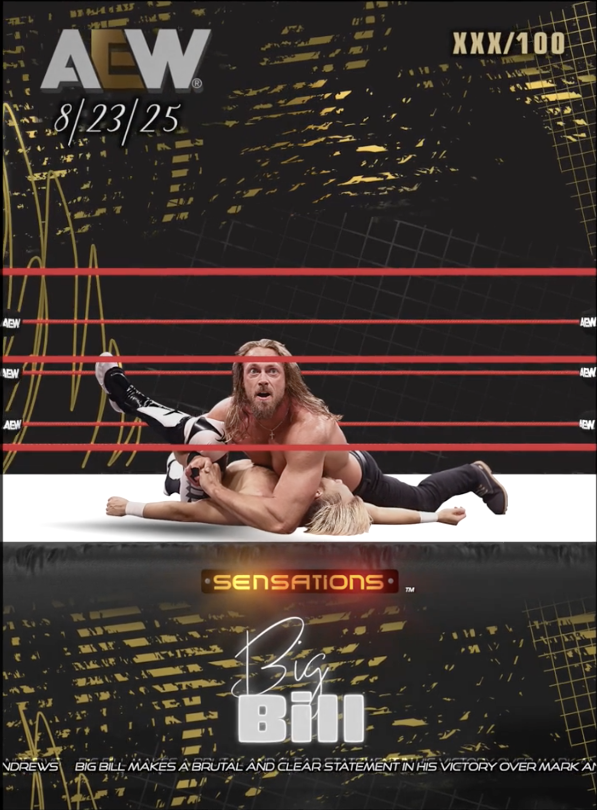 AEW UPPER DECK EVOLUTION SENSATIONS AUTHENTIC DIGITAL COLLECTIBLES 2025 – 8/23/25 – BIG BILL – BIG BILL MAKES A BRUTAL AND CLEAR STATEMENT IN HIS VICTORY OVER MARK ANDREWS #AS-24