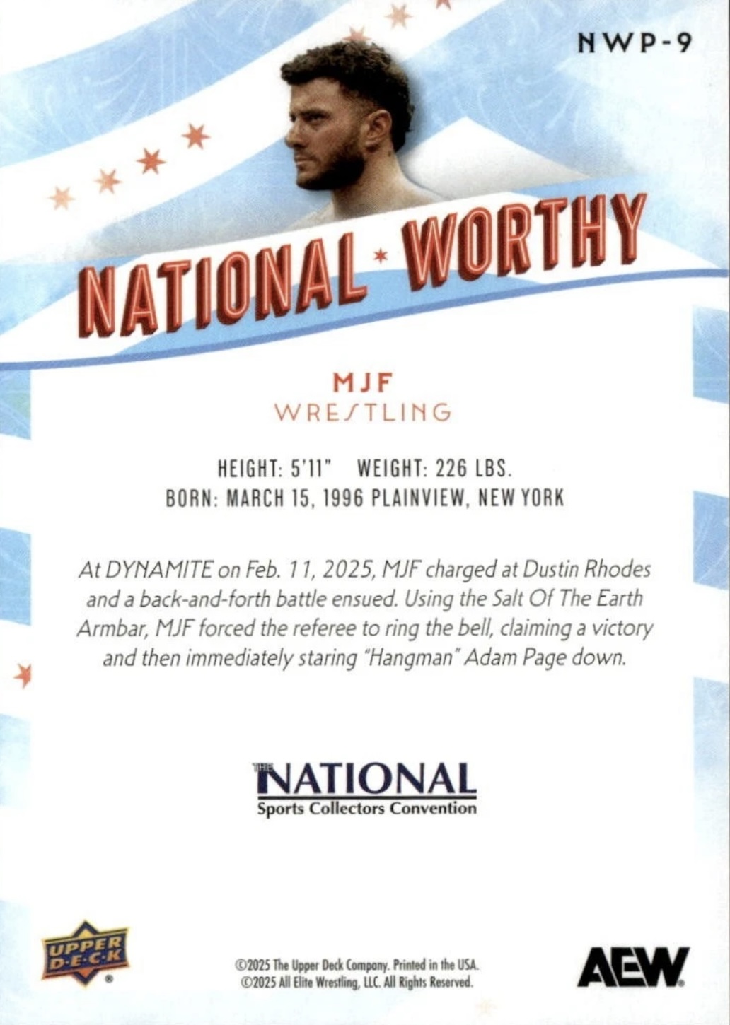 AEW UPPER DECK NSCC PROMOTIONAL PACK 2025 – NATIONAL WORTHY – MJF #NWP-9 – RED PARALLEL