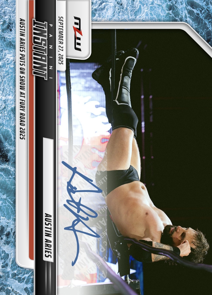 MLW PANINI INSTANT 2025 – AUSTIN ARIES – AUSTIN ARIES PUTS ON A SHOW AT FURY ROAD 2025 #17 – WATER PARALLEL AUTOGRAPH