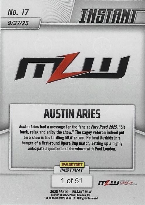 MLW PANINI INSTANT 2025 – AUSTIN ARIES – AUSTIN ARIES PUTS ON A SHOW AT FURY ROAD 2025 #17