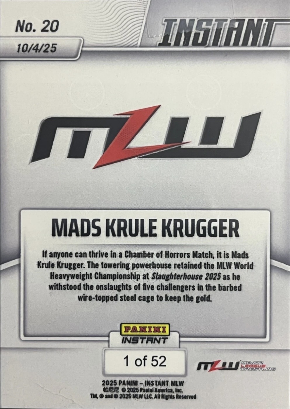 MLW PANINI INSTANT 2025 – MADS KRULE KRUGGER – MADS KRULE KRUGGER KEEPS MLW CROWN #20