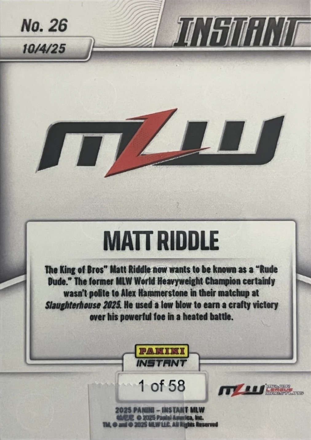 MLW PANINI INSTANT 2025 – MATT RIDDLE – MATT RIDDLE GETS RUDE WITH ALEX HAMMERSTONE #26