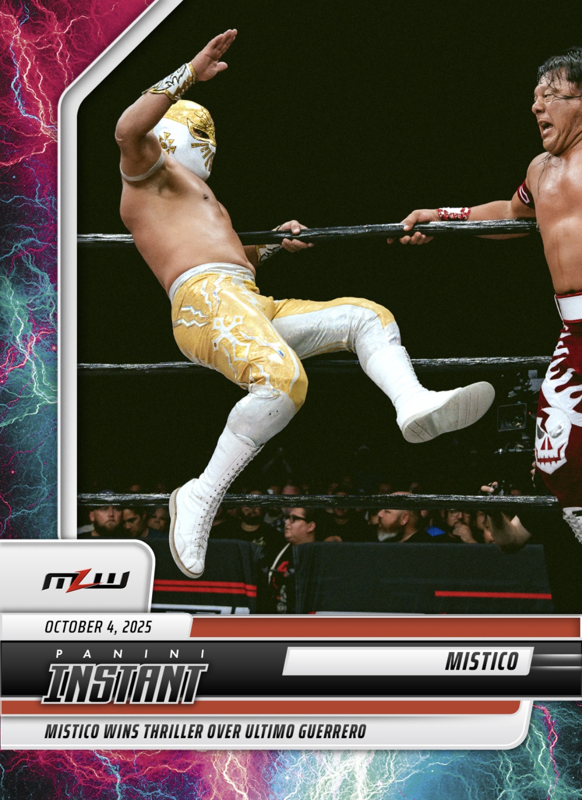 MLW PANINI INSTANT 2025 – MISTICO – MISTICO WINS THRILLER OVER ULTIMO GUERRERO #28 – LIGHTNING PARALLEL