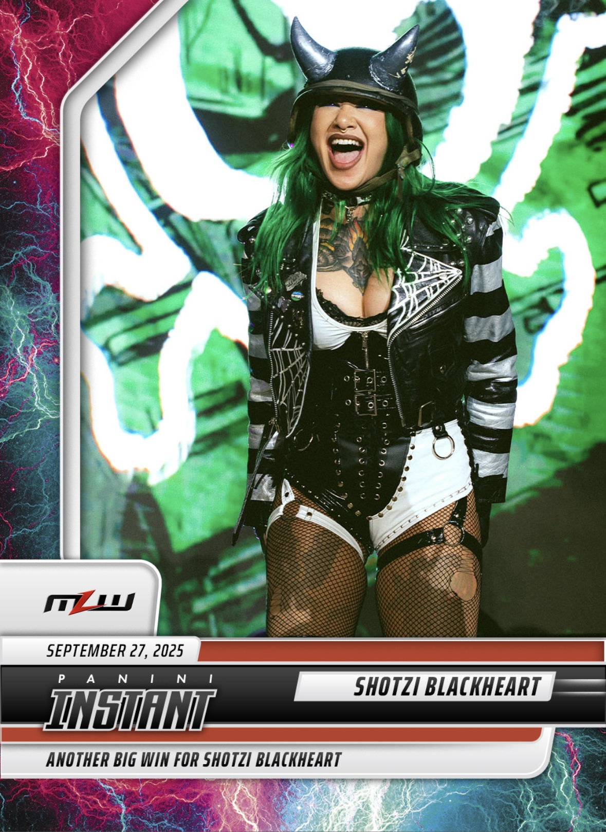 MLW PANINI INSTANT 2025 – SHOTZI BLACKHEART – ANOTHER BIG WIN FOR SHOTZI BLACKHEART #15 – LIGHTNING PARALLEL