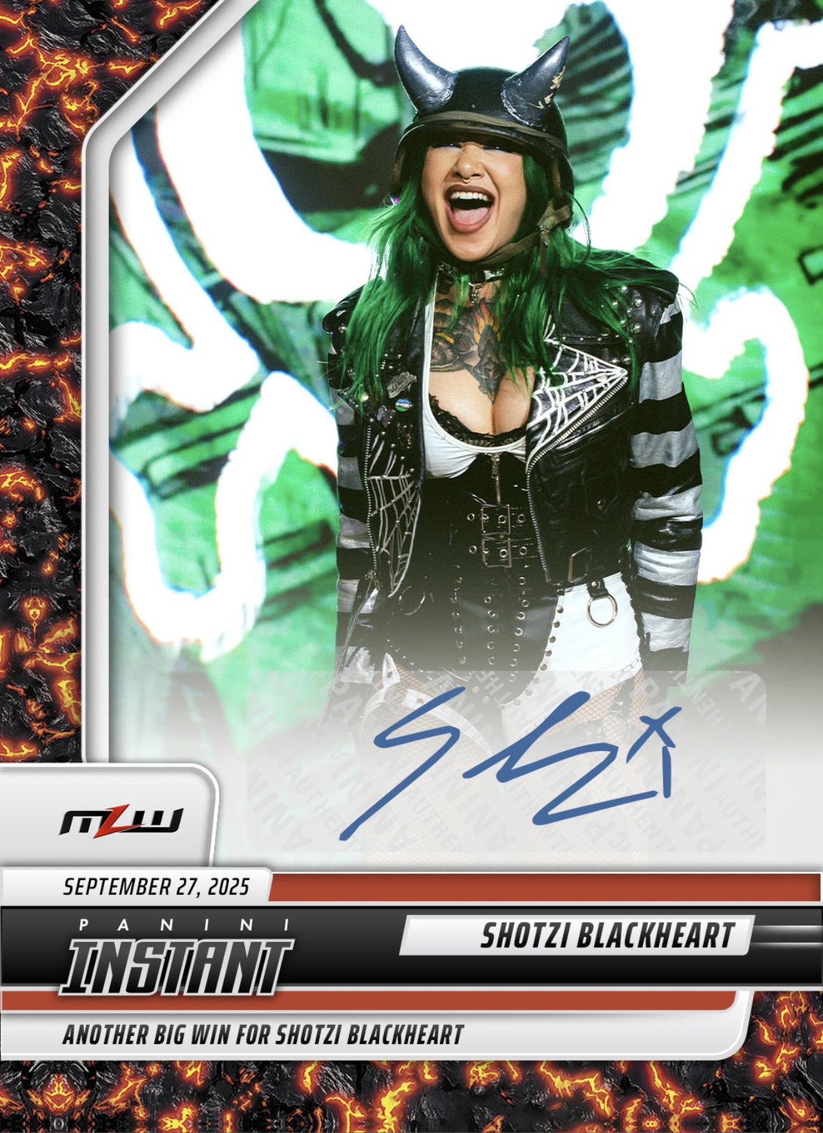 MLW PANINI INSTANT 2025 – SHOTZI BLACKHEART – ANOTHER BIG WIN FOR SHOTZI BLACKHEART #15 – MAGMA PARALLEL AUTOGRAPH