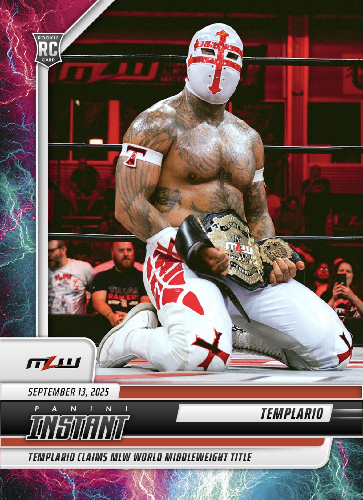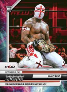 MLW PANINI INSTANT 2025 – TEMPLARIO – TEMPLARIO CLAIMS MLW WORLD MIDDLEWEIGHT TITLE #12 – LIGHTNING PARALLEL