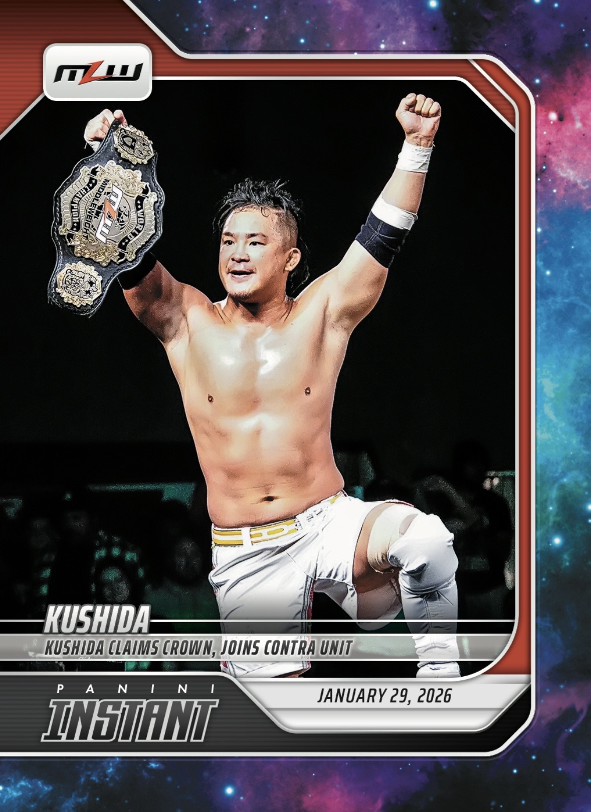 MLW PANINI INSTANT 2026 – KUSHIDA – KUSHIDA CLAIMS CROWN, JOINS CONTRA UNIT #1 – GALAXY PARALLEL
