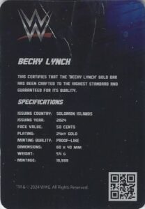THE KOIN CLUB OFFICIAL WWE SUPERSTARS LENTICULAR GOLD COIN BAR COLLECTION 2024 – BECKY LYNCH