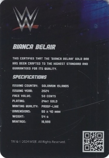 THE KOIN CLUB OFFICIAL WWE SUPERSTARS LENTICULAR GOLD COIN BAR COLLECTION 2024 – BIANCA BELAIR