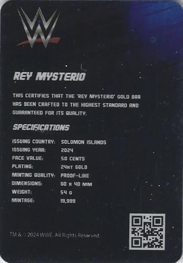 THE KOIN CLUB OFFICIAL WWE SUPERSTARS LENTICULAR GOLD COIN BAR COLLECTION 2024 – REY MYSTERIO