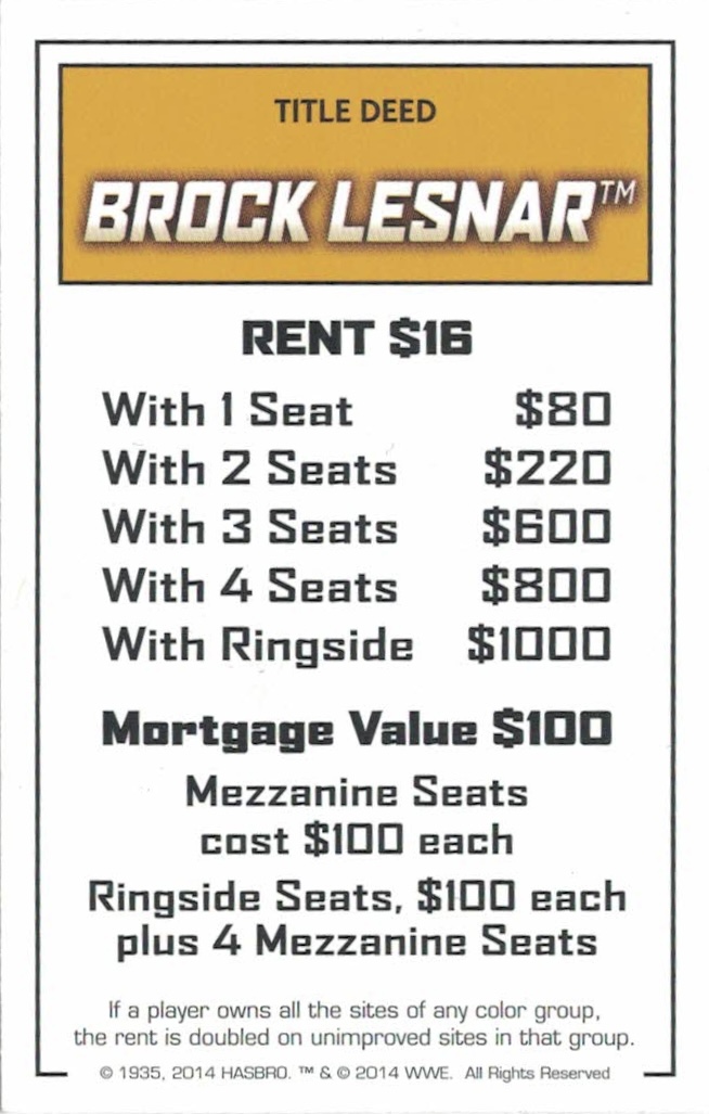 WWE HASBRO MONOPOLY BOARD GAME 2014 – BROCK LESNAR