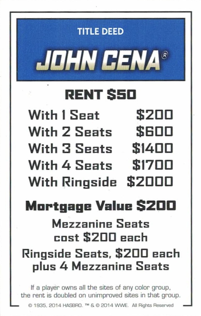 WWE HASBRO MONOPOLY BOARD GAME 2014 – JOHN CENA