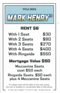 WWE HASBRO MONOPOLY BOARD GAME 2014 – MARK HENRY