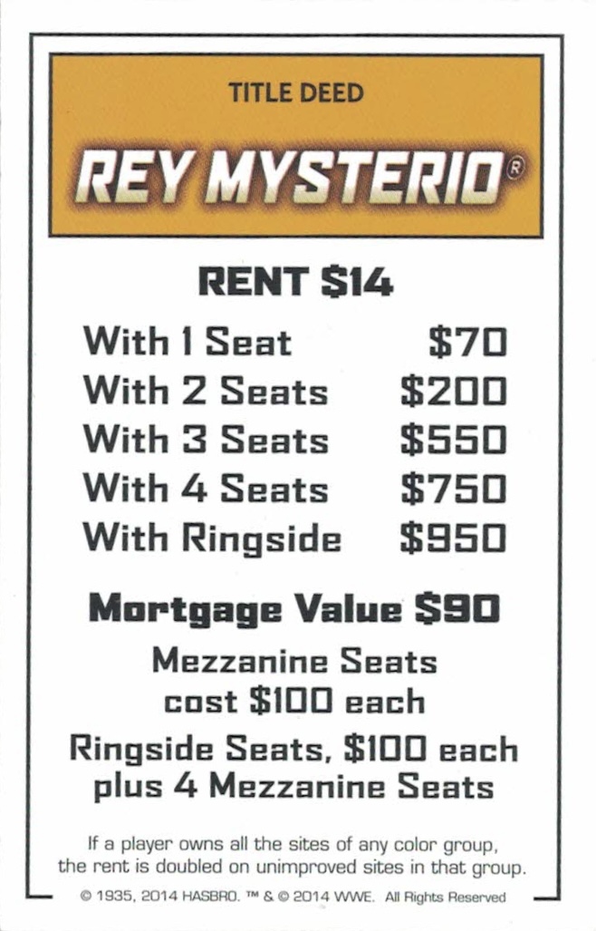 WWE HASBRO MONOPOLY BOARD GAME 2014 – REY MYSTERIO